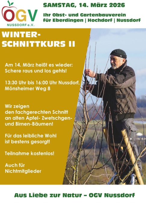 Der zweite Schnittkurs im neuen Jahr findet am Samstag, 14. März 2026 um 13:30 Uhr in Nussdorf statt. Treffpunkt am Mönsheimer Weg 8!